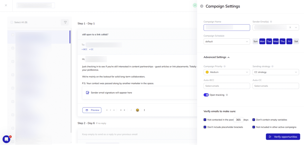 Here is also where you can set your campaign priority, schedule, pick sender emails, and your sending strategy.
